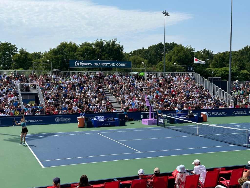 We watched two matches. In the first, the German Jule Niemeyer was playing the Canadian Stacey Fung. Both were tennis pros playing in the top 100 of the WTA ranking. The crowd was cheering only for Stacey, so I tried to support Jule a bit. In the end, Stacey won in the 3rd set – but it was close.