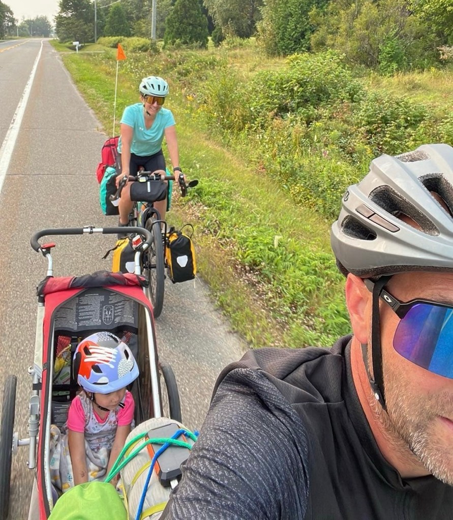 They had a couple of months parental leave and were cycling together with their 4 year old daughter Olye from Montreal to Halifax.